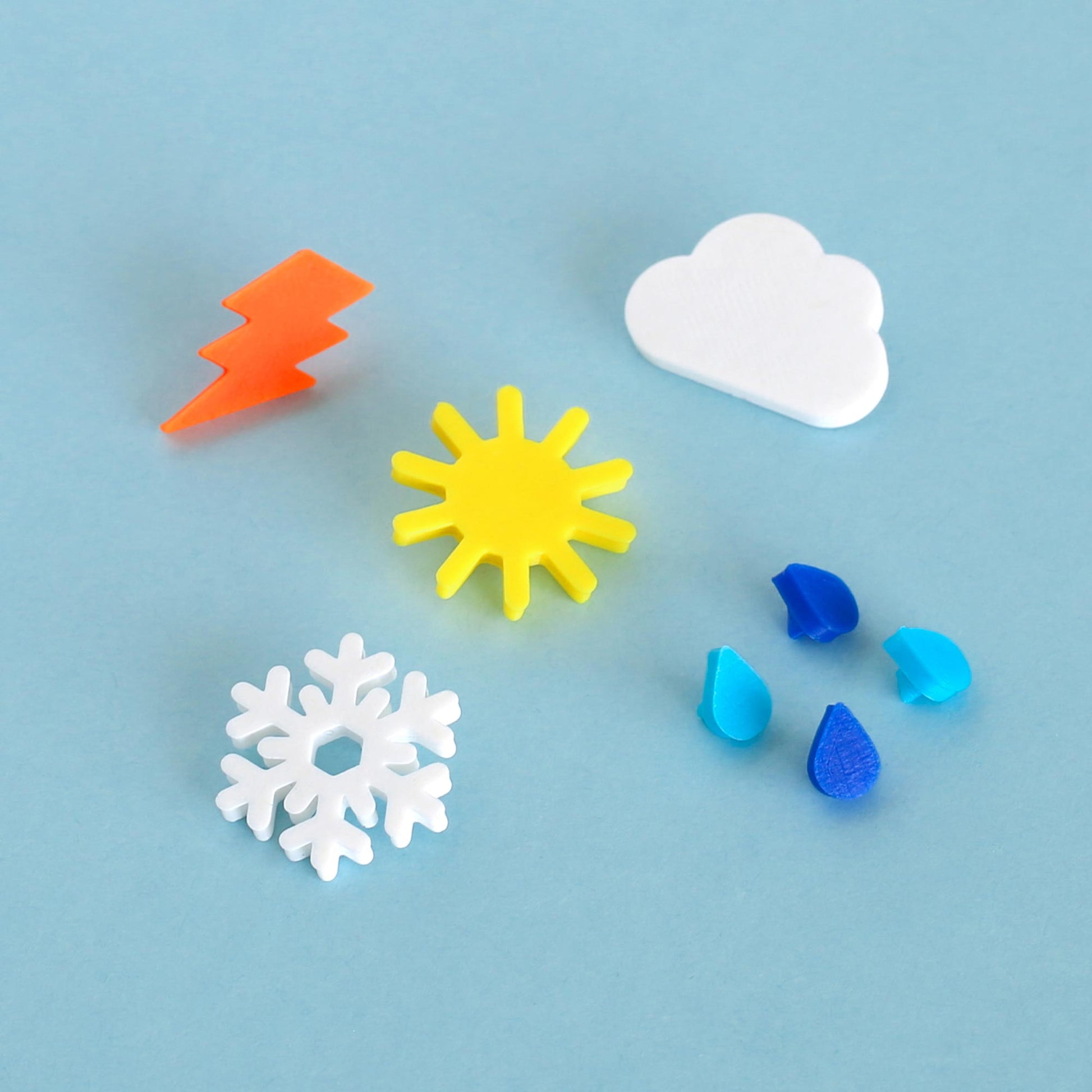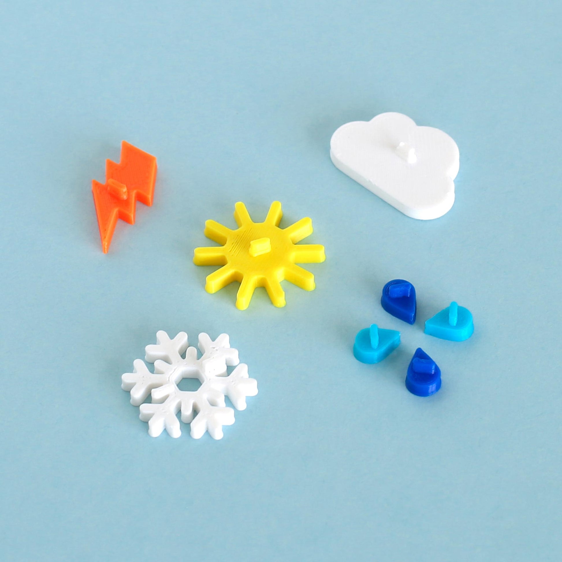 - 4 mini raindrops (light blue and blue)